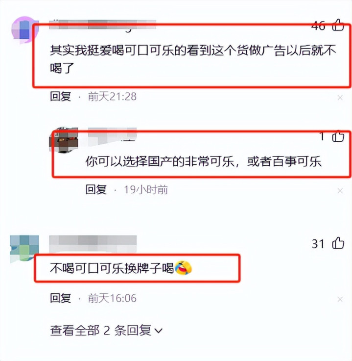 可口可乐邀请她当广告主角,可视频里的她,眉头紧拧,笑容僵硬,一点过年的喜庆劲儿都没有,不少网友留言说,看了这个广告,以后再也不喝可口可乐了。